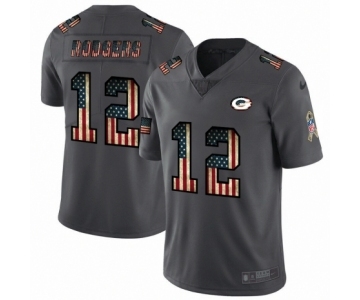 Men's Green Bay Packers #12 Aaron Rodgers Limited Black USA Flag 2019 Salute To Service Football Jersey