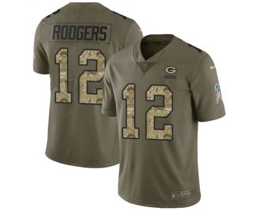 Men's Green Bay Packers #12 Aaron Rodgers Limited Olive Camo 2017 Salute to Service Football Jersey