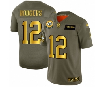 Men's Green Bay Packers #12 Aaron Rodgers Limited Olive Gold 2019 Salute to Service Football Jersey
