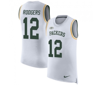 Men's Green Bay Packers #12 Aaron Rodgers Limited White Rush Player Name & Number Tank Top Football Jersey