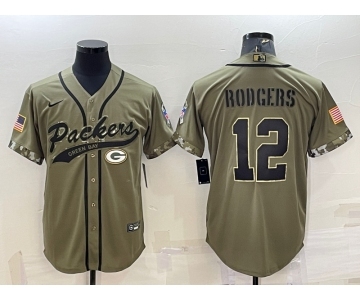 Men's Green Bay Packers #12 Aaron Rodgers Olive 2022 Salute to Service Cool Base Stitched Baseball Jersey