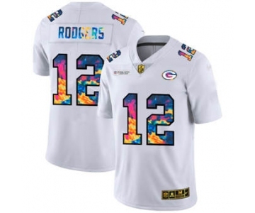 Men's Green Bay Packers #12 Aaron Rodgers White Multi-Color 2020 Football Crucial Catch Limited Football Jersey