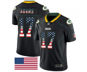 Men's Green Bay Packers #17 Davante Adams Limited Black Rush USA Flag Football Jersey