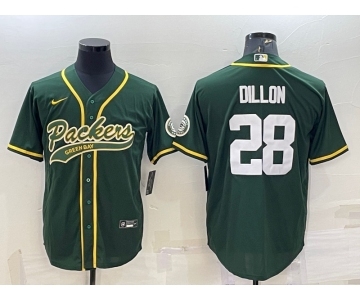 Men's Green Bay Packers #28 AJ Dillon Green With Patch Cool Base Stitched Baseball Jersey