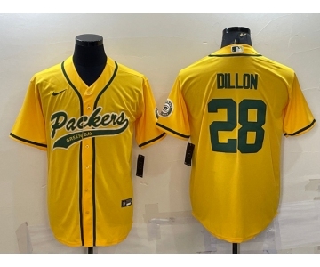 Men's Green Bay Packers #28 AJ Dillon Yellow With Patch Cool Base Stitched Baseball Jersey