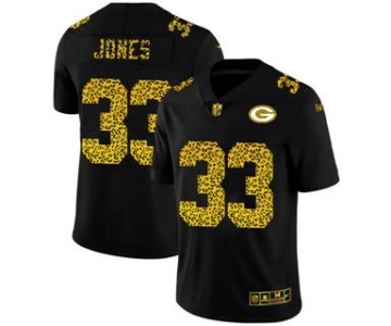 Men's Green Bay Packers #33 Aaron Jones Black Leopard Print Fashion Vapor Limited Football Jersey