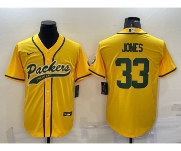 Your Position: Home>NIKE NFL Jerseys>Nike Green Bay Packers>Limited Jerseys>Men's Green Bay Packers #33 Aaron Jones Yellow With Patch Cool Base Stitched Baseball Jersey