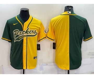 Your Position: Home>NIKE NFL Jerseys>Nike Green Bay Packers>Limited Jerseys>Men's Green Bay Packers Blank Green Yellow Split With Patch Cool Base Stitched Baseball Jersey