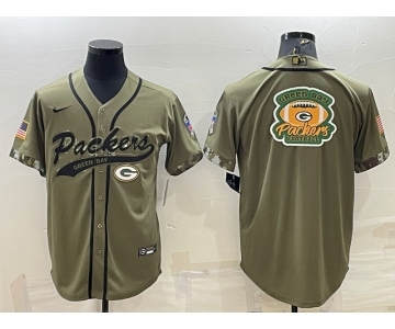 Men's Green Bay Packers Olive Salute to Service Team Big Logo Cool Base Stitched Baseball Jersey