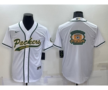 Men's Green Bay Packers White Team Big Logo With Patch Cool Base Stitched Baseball Jersey