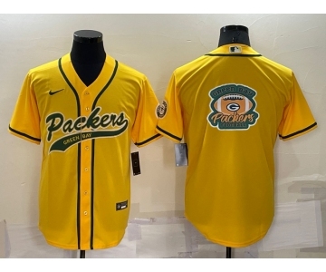 Men's Green Bay Packers Yellow Team Big Logo With Patch Cool Base Stitched Baseball Jersey