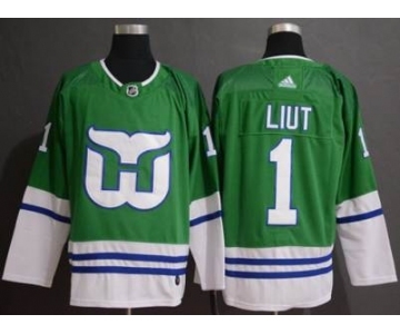 Men's Hartford Whalers #1 Mike Liut Green Stitched Hockey Jersey