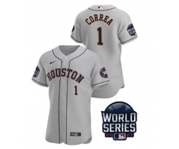 Men's Houston Astros #1 Carlos Correa 2021 Gray World Series Flex Base Stitched Baseball Jersey