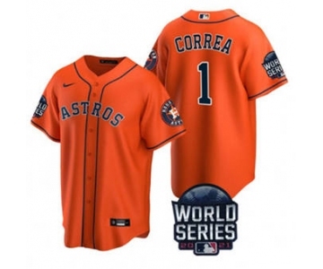 Men's Houston Astros #1 Carlos Correa 2021 Orange World Series Cool Base Stitched Baseball Jersey