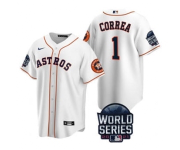 Men's Houston Astros #1 Carlos Correa 2021 White World Series Cool Base Stitched Baseball Jersey