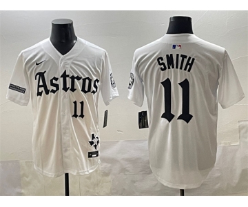 Men's Houston Astros #11 Cam Smith White Gothic 'Houston Born Barrio Raised' Limited Stitched Baseball Jersey