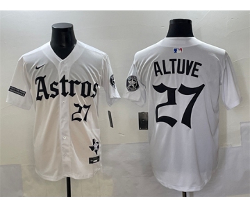 Men's Houston Astros #27 Jose Altuve White Gothic 'Houston Born Barrio Raised' Limited Stitched Baseball Jersey