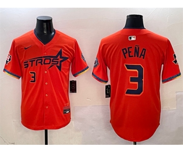 Men's Houston Astros #3 Jeremy Pena Orange 2025 City Connect With Texas Patch Limited Stitched Baseball Jersey