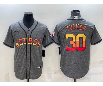 Your Position: Home>NIKE MLB Jerseys>Houston Astros >Men>Men's Houston Astros #30 Kyle Tucker Grey With Patch Cool Base Stitched Baseball Jersey