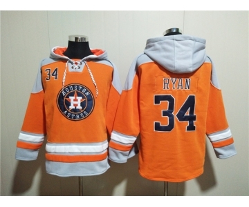 Men's Houston Astros #34 Nolan Ryan Orange Ageless Must-Have Lace-Up Pullover Hoodie