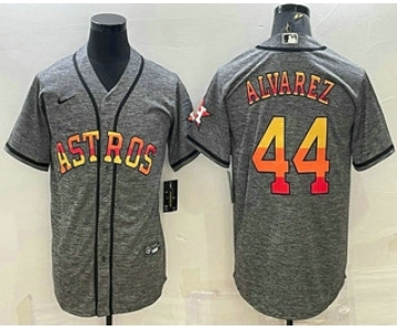 Men's Houston Astros #44 Yordan Alvarez Grey Gridiron With Patch Cool Base Stitched Baseball Jersey