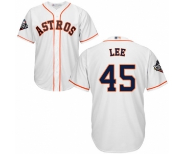 Men's Houston Astros #45 Carlos Lee Replica White Home Cool Base 2019 World Series Bound Baseball Jersey