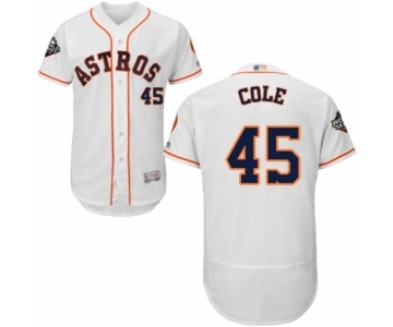 Men's Houston Astros #45 Gerrit Cole White Home Flex Base Authentic Collection 2019 World Series Bound Baseball Jersey