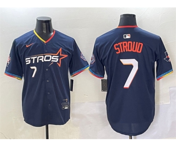 Men's Houston Astros #7 C.J. Stroud Navy 2025 City Connect With Texas Patch Limited Stitched Baseball Jersey