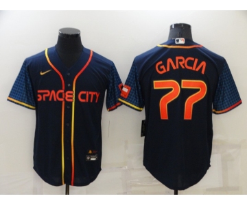 Men's Houston Astros #77 Luis Garcia 2022 Navy Blue City Connect Cool Base Stitched Jersey