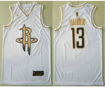 Men's Houston Rockets #13 James Harden White Golden Nike Swingman Stitched NBA Jersey