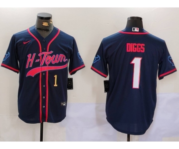Men's Houston Texans #1 Stefon Diggs Navy With Patch Cool Base Stitched Baseball Jerseys