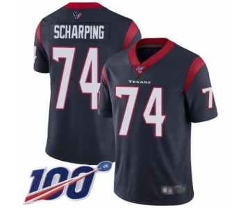 Men's Houston Texans #74 Max Scharping Navy Blue Team Color Vapor Untouchable Limited Player 100th Season Football Jersey