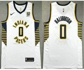 Men's Indiana Pacers #0 Tyrese Haliburton White Association Edition Sponsor Stitched Jersey