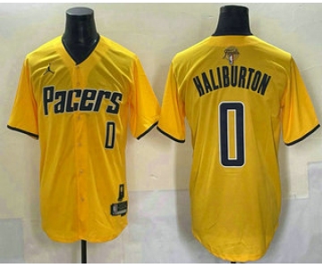 Men's Indiana Pacers #0 Tyrese Haliburton Yellow 2025 Finals Vapor Stitched Baseball Jersey