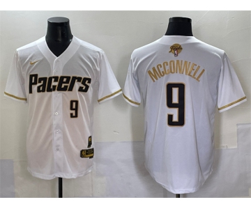Men's Indiana Pacers #9 T.J. McConnell White Gold 2025 Finals Vapor Stitched Baseball Jersey