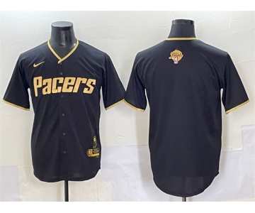 Men's Indiana Pacers Blank Black Gold 2025 Finals Vapor Stitched Baseball Jersey