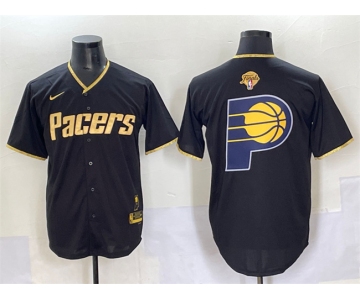 Men's Indiana Pacers Team Big Logo Black Gold 2025 Finals Vapor Stitched Baseball Jersey