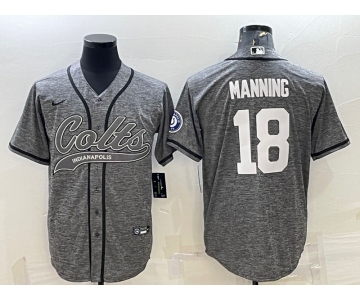 Men's Indianapolis Colts #18 Peyton Manning Grey Gridiron With Patch Cool Base Stitched Baseball Jersey