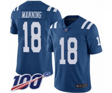 Men's Indianapolis Colts #18 Peyton Manning Limited Royal Blue Rush Vapor Untouchable 100th Season Football Jersey