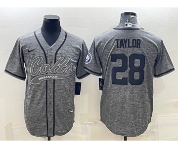 Men's Indianapolis Colts #28 Jonathan Taylor Grey Gridiron With Patch Cool Base Stitched Baseball Jersey