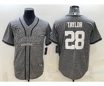 Men's Indianapolis Colts #28 Jonathan Taylor Grey Gridiron With Patch Cool Base Stitched Baseball Jerseys
