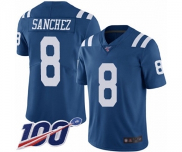 Men's Indianapolis Colts #8 Rigoberto Sanchez Limited Royal Blue Rush Vapor Untouchable 100th Season Football Jersey