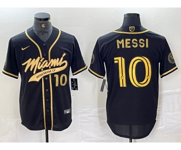 Men's Inter Miami CF #10 Lionel Messi Black Gold Cool Base Stitched Baseball Jersey