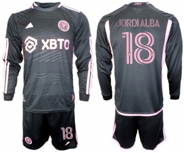 Men's Inter Miami CF #18 Jordi Alba 2025 Black Away Soccer Jersey Suit