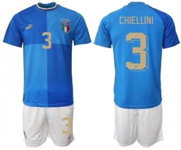 Men's Italy #3 Chiellini Blue Home Soccer Jersey Suit