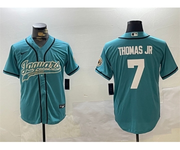Men's Jacksonville Jaguars #7 Brian Thomas Jr Teal With Patch Cool Base Stitched Baseball Jersey
