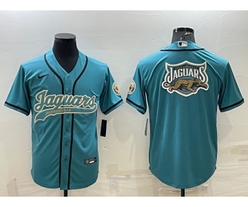 Men's Jacksonville Jaguars Teal Team Big Logo With Patch Cool Base Stitched Baseball Jersey