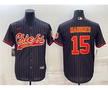 Men's Kansas City Chiefs #15 Patrick Mahomes Black With Patch Cool Base Stitched Baseball Jersey