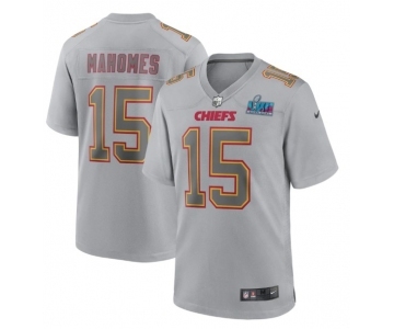 Men's Kansas City Chiefs #15 Patrick Mahomes Gray Super Bowl LVII Patch Atmosphere Fashion Stitched Game Jersey
