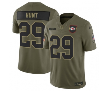 Men's Kansas City Chiefs #29 Kareem Hunt Olive 2025 Salute to Service Limited Football Stitched Jersey